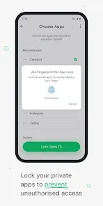 ✔ Bloqueo de aplicaciones: Protege aplicaciones privadas con un código PIN o biometría