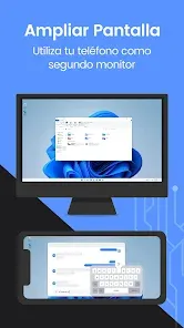 Convierte tu teléfono en un monitor secundario para tu computadora, permitiéndote centrarte en tareas principales en la pantalla principal mientras manejas actividades auxiliares en la pantalla de tu teléfono, aumentando significativamente tu productividad.